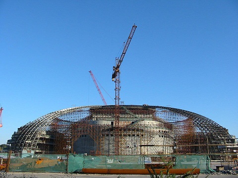 读博士期间跟随陈老师团队参与的第一个项目。此结构应该为当时国内最大的开合结构项目(当时号称南鸟巢,只是鸟巢的开合屋盖夭折了)。我们团队承担了此项目的地上结构的分析和设计。我的工作任务是进行钢桁架的施工过程分析。也是由此项目,对我们的团队实力有了第一次摸底,人才济济。