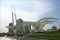读博士期间跟随陈老师团队参与的第二个项目,此结构为张拉曲梁结构。自己的工作任务是对登/候机长廊的屋盖结构进行静力分析和动力分析,还算比较单纯。航站楼的结构分析已经由一个师兄承担,结构分析的后处理工作也由两个师弟妹进行承担。 |